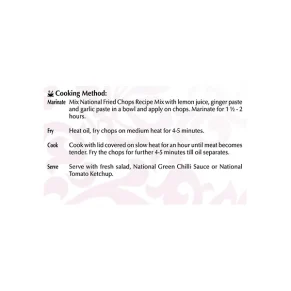 National Fried Chops Recipe Mix is specially made by a panel of experts, using aromatic spices and the finest ingredients in exactly the right measure. It will enable you to cook delicious fried chops with ease that you and your loved ones can relish each day.