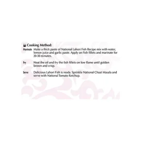 National Lahori Style Fried Fish Recipe Mix is specially made by a panel of experts, using aromatic spices and the finest ingredients in exactly the right measure. It will enable you to cook delicious meal with ease that you and your loved ones can relish each day.